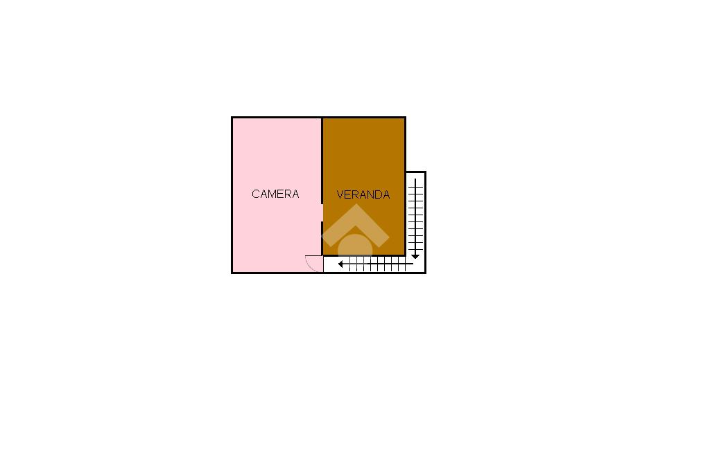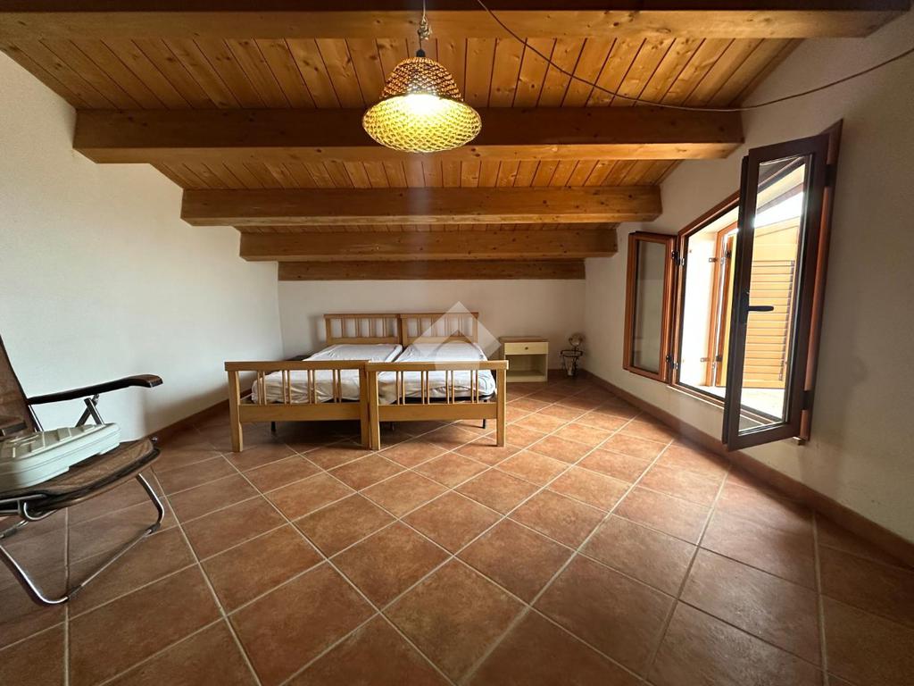 Una scala interna porta in mansarda, con camera da letto e veranda.