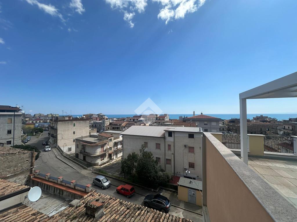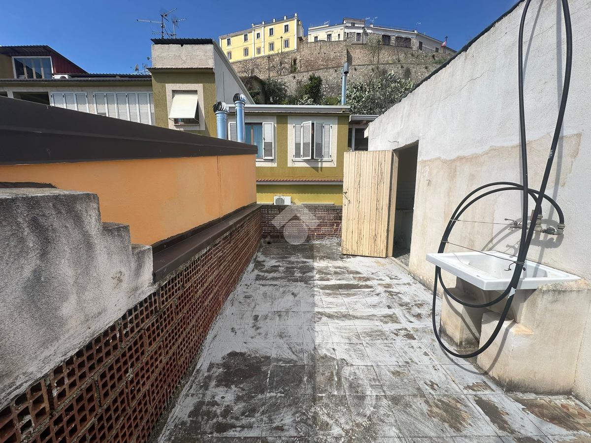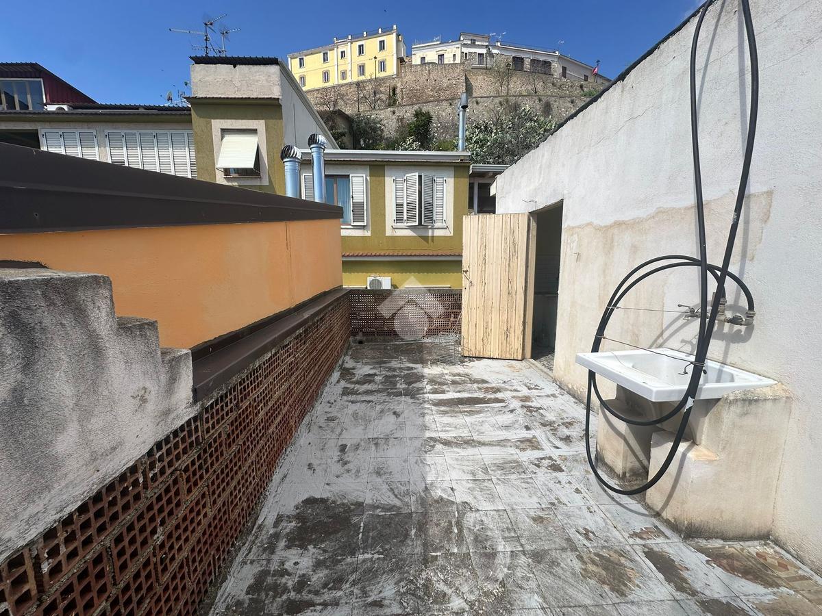 Dalla cucina si accede al terrazzo, ampio, con vista panoramica, perfetto per trascorrere momenti di relax o di convivialità con amici e parenti.