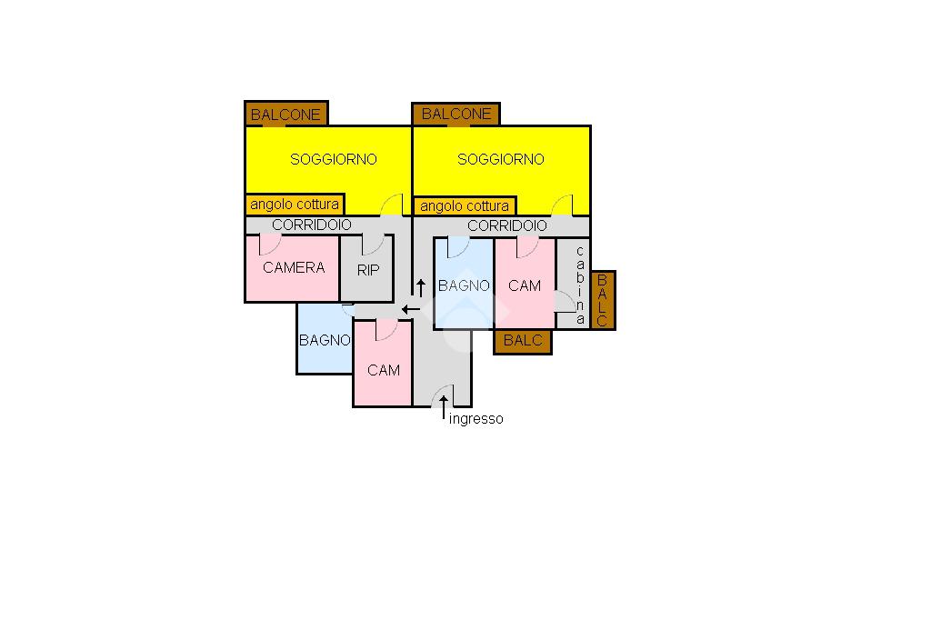 L'immobile è composto da: ingresso in disimpegno, cucina-soggiorno, salone, tre camere da letto, cabina armadio, due bagni e doppio ripostiglio.