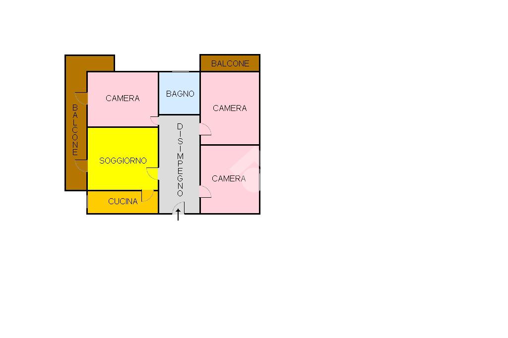 La soluzione, di comoda metratura e buone condizioni interne è così composta: ingresso in disimpegno, soggiorno, cucina, tre camere da letto e bagno.