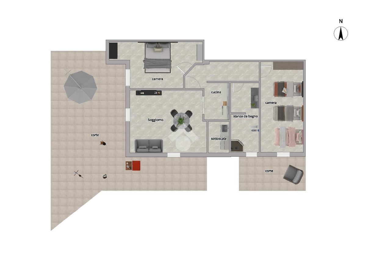 E' inoltre presente un'ampia corte esterna privata, perfetta per pranzi e cene all'aperto e per passare momenti di convivialità con amici e parenti in totale sicurezza e tranquillità.